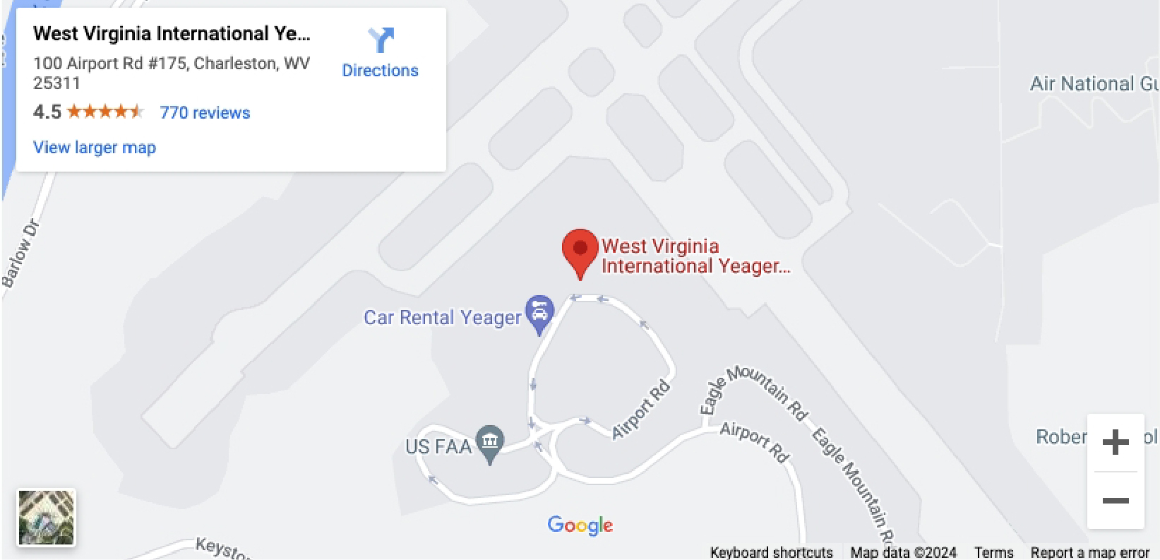 CRW Airport is conveniently located just a short drive from downtown Charleston and a few minutes from the intersection of three major interstates, making it highly accessible. Serving both Charleston and the wider region, including Huntington and southern West Virginia, CRW is easy to navigate to. Whether you’re traveling from the city or the surrounding areas, getting here is straightforward and hassle-free.